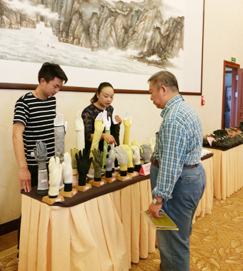 (圖為總經理華小梅向上海(hai)勞保協會秘書長(chang)陳海(hai)達介(jie)紹公司產品(pin))